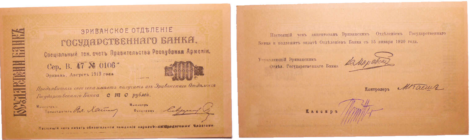 / Arménie – Autonomous republic, Yerevan – 100 roubles (1920)