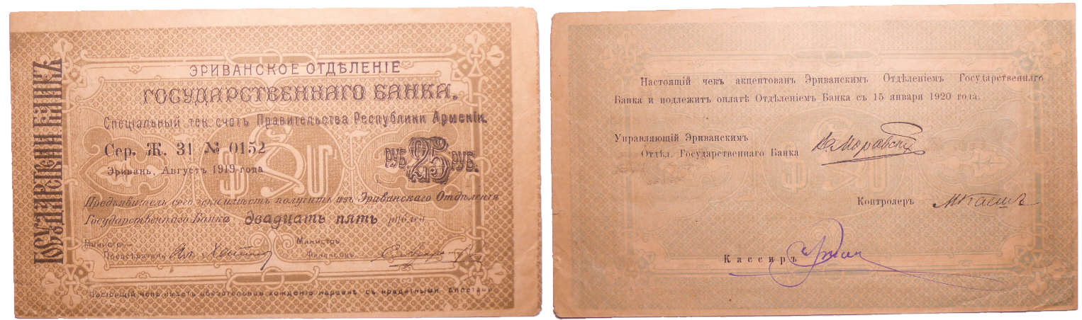 / Arménie – Autonomous republic, Yerevan – 25 roubles (1920)