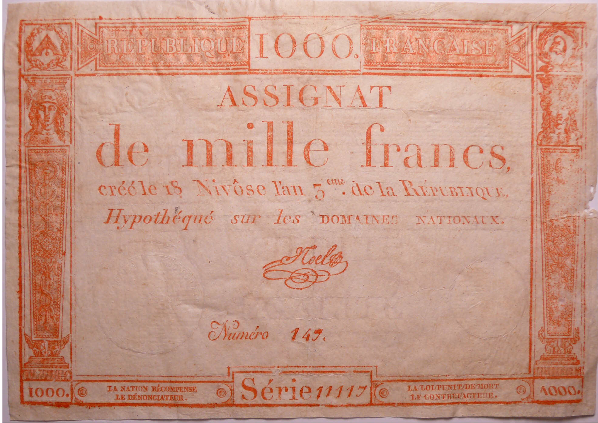 Assignat de 1000 francs création du 18 nivôse an III (7 janvier 1795)