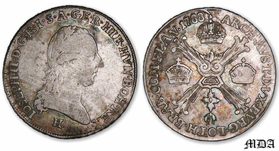 / Autriche Hollandaise – Joseph II 1/4 de couronne 1788 H (Gunzbourg)