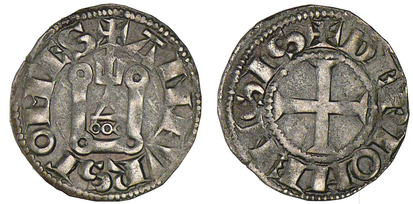Alphonse de France (1241-1271). A/ + ALFVNSVS COMES. Châtel à fronton crénelé.