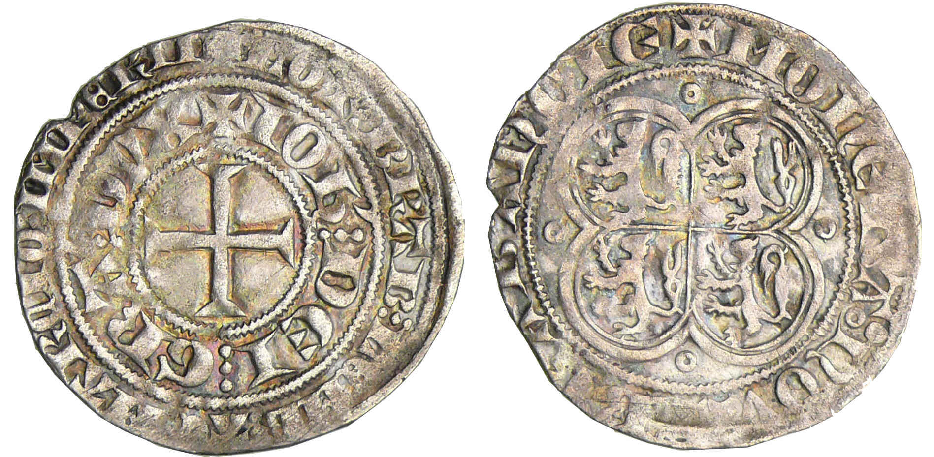 Revers : R/ + mONE TA: nA: – COmIT – FLAND. Croix longue pattée, portant un lis en coeur, cantonnée de deux lions en 1 et 4 et de deux lis en 2 et 3.