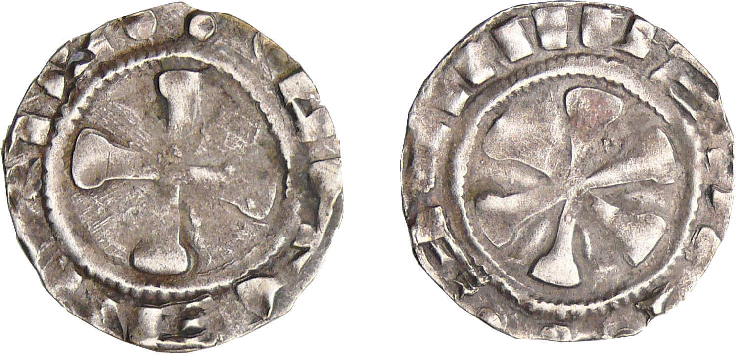 (1060-1120). A/ MONETA rétrograde Croix à quatre branches.