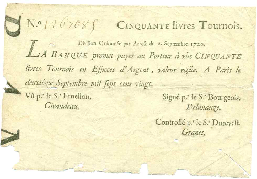 Banque de Law – Billet de 50 livres tournois – 2 septembre 1720