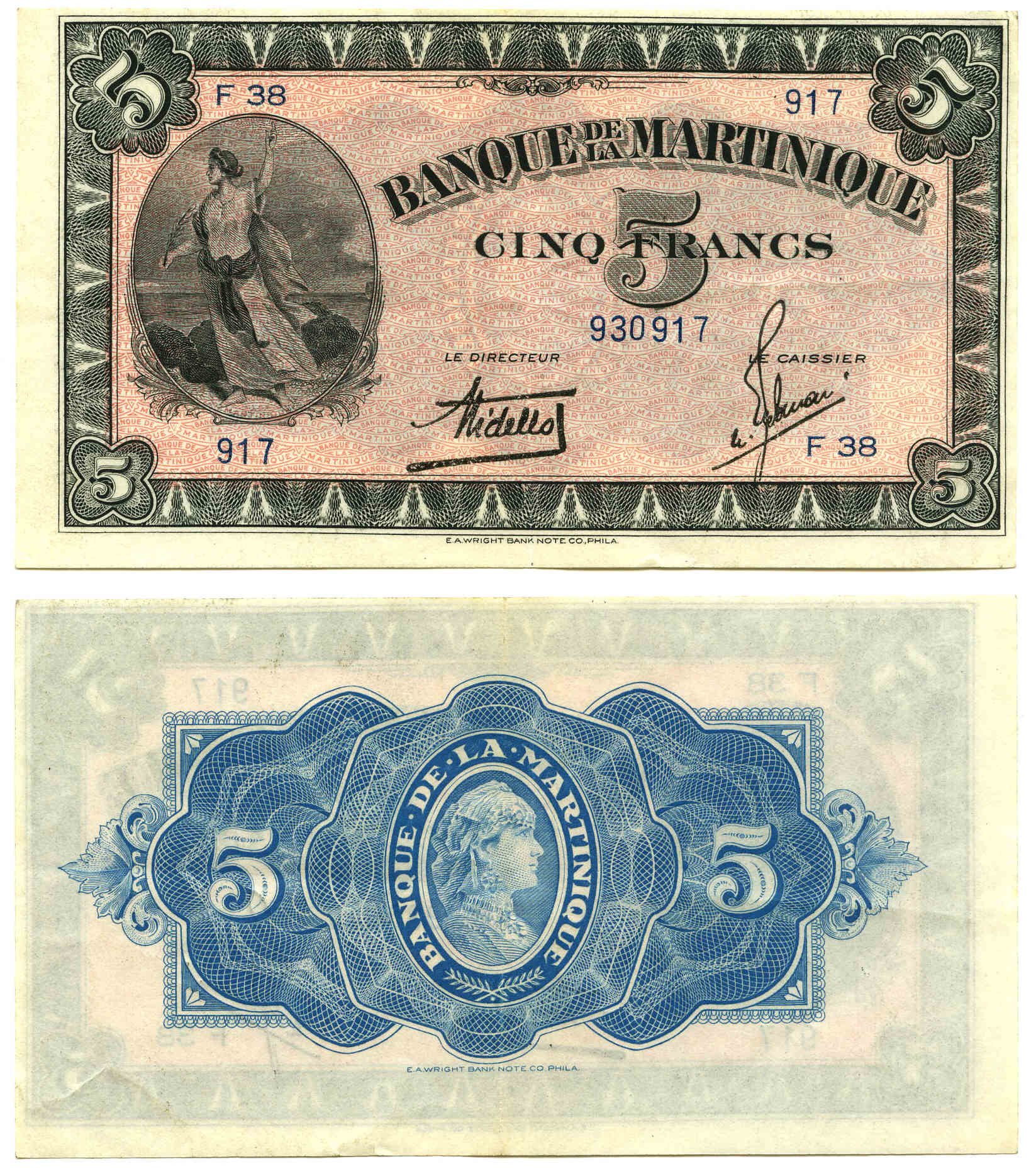 / Banque de Martinique – 5 francs type 1942 américain