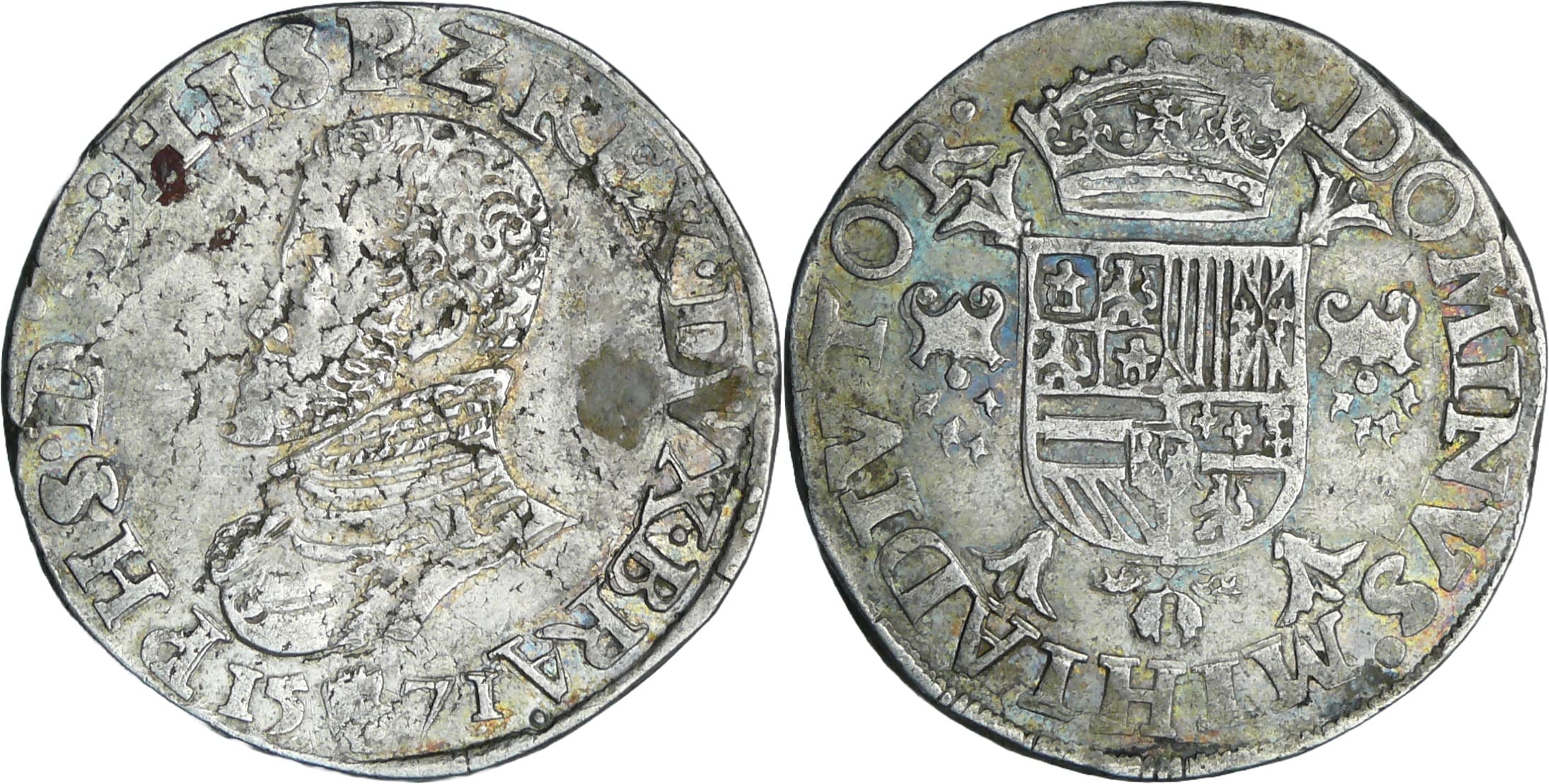 Belgique – Brabant, Duché – Philippe II (1555-1598) – 1/2 écu de Philippe 1571 (Anvers)