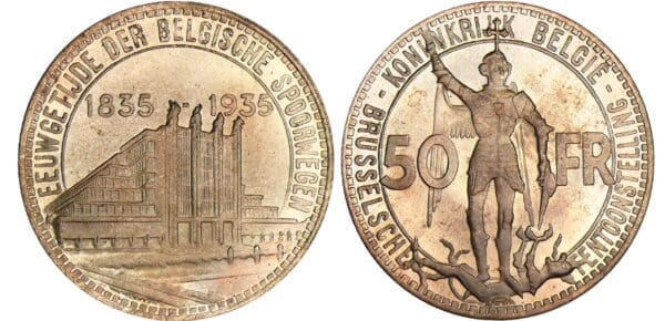 / Belgique – Léopold III – 50 francs 1935 – Essai légende flamande