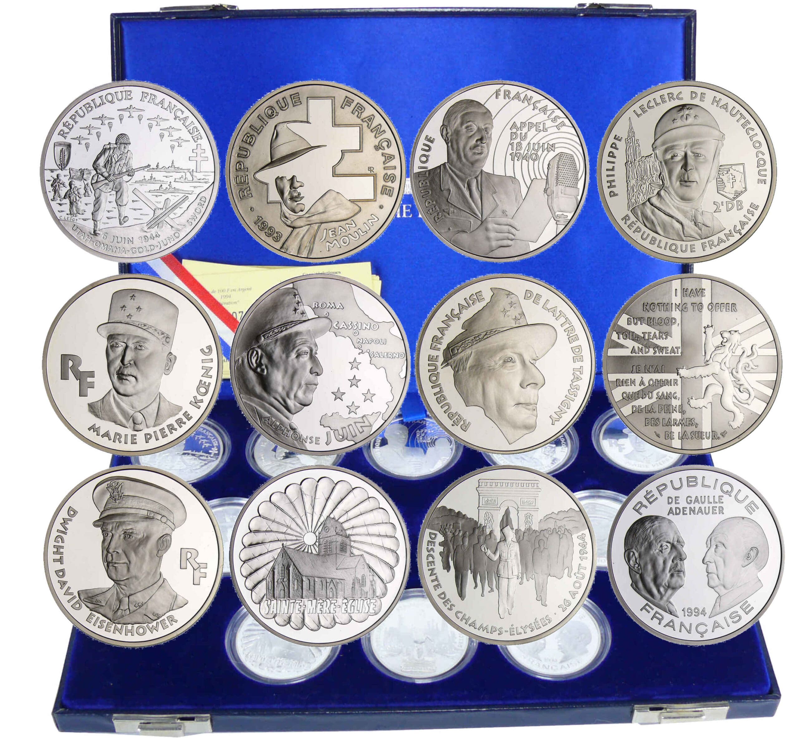 Cinquième république (1959- ) – Coffret La liberté retrouvée 12 monnaies – 1993 et 1994 argent