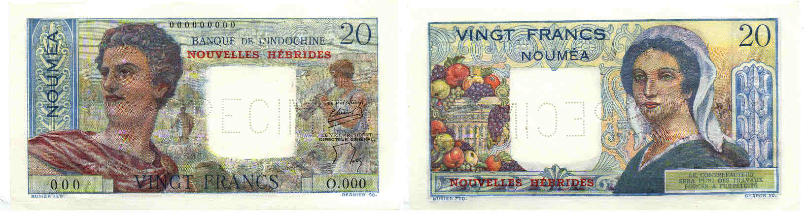 Billet de 20 francs – Nouméa – Banque de l’Indochine – Spécimen