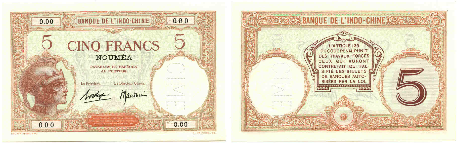 Billet de 5 francs – Nouméa – Banque de l’Indo-Chine – Spécimen