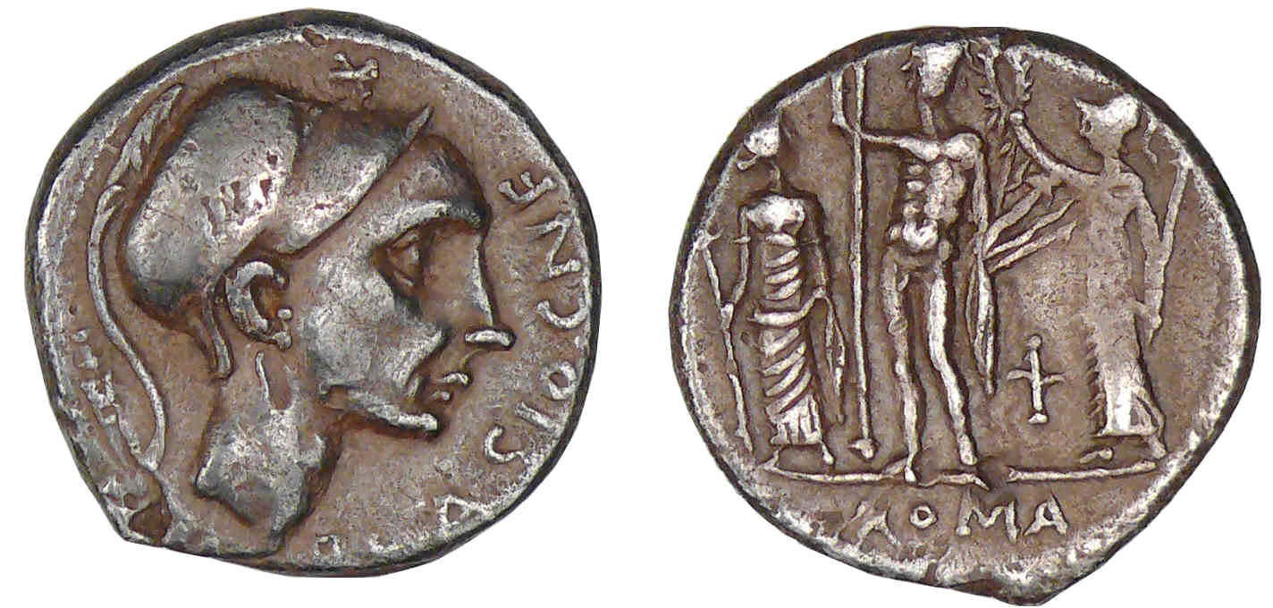 A/ Tête casquée de Mars à droite. Au-dessus, une étoile et dans le champ droit: CN BLASIO CN F.