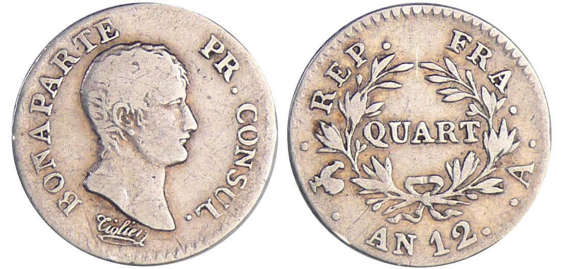 / Bonaparte premier consul (1799-1804) – 1/4 franc An 12 A (Paris)