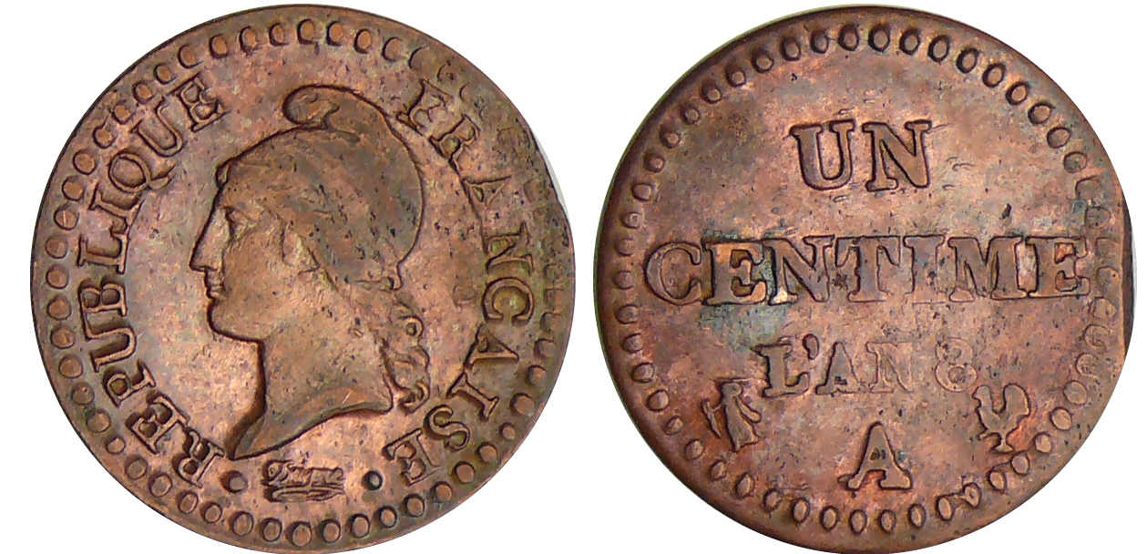Bonaparte premier consul (1799-1804) – 1 centime Dupré An 8 A (Paris)