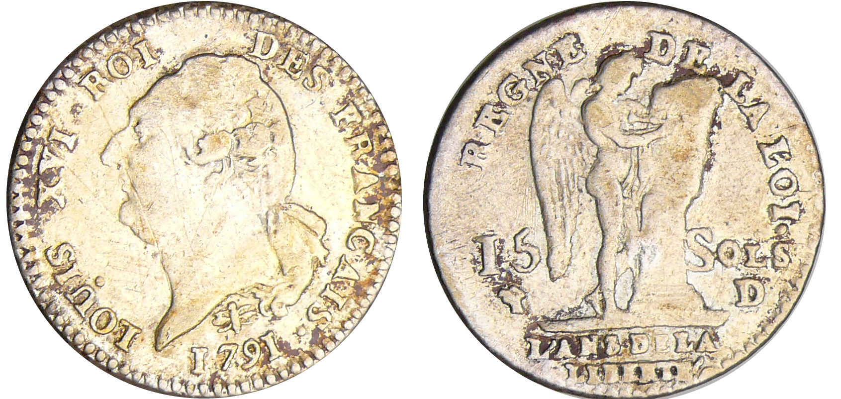 / Constitution (1791-1792) – 15 sols type FRANCOIS 1791 D (Lyon) 2ème sem