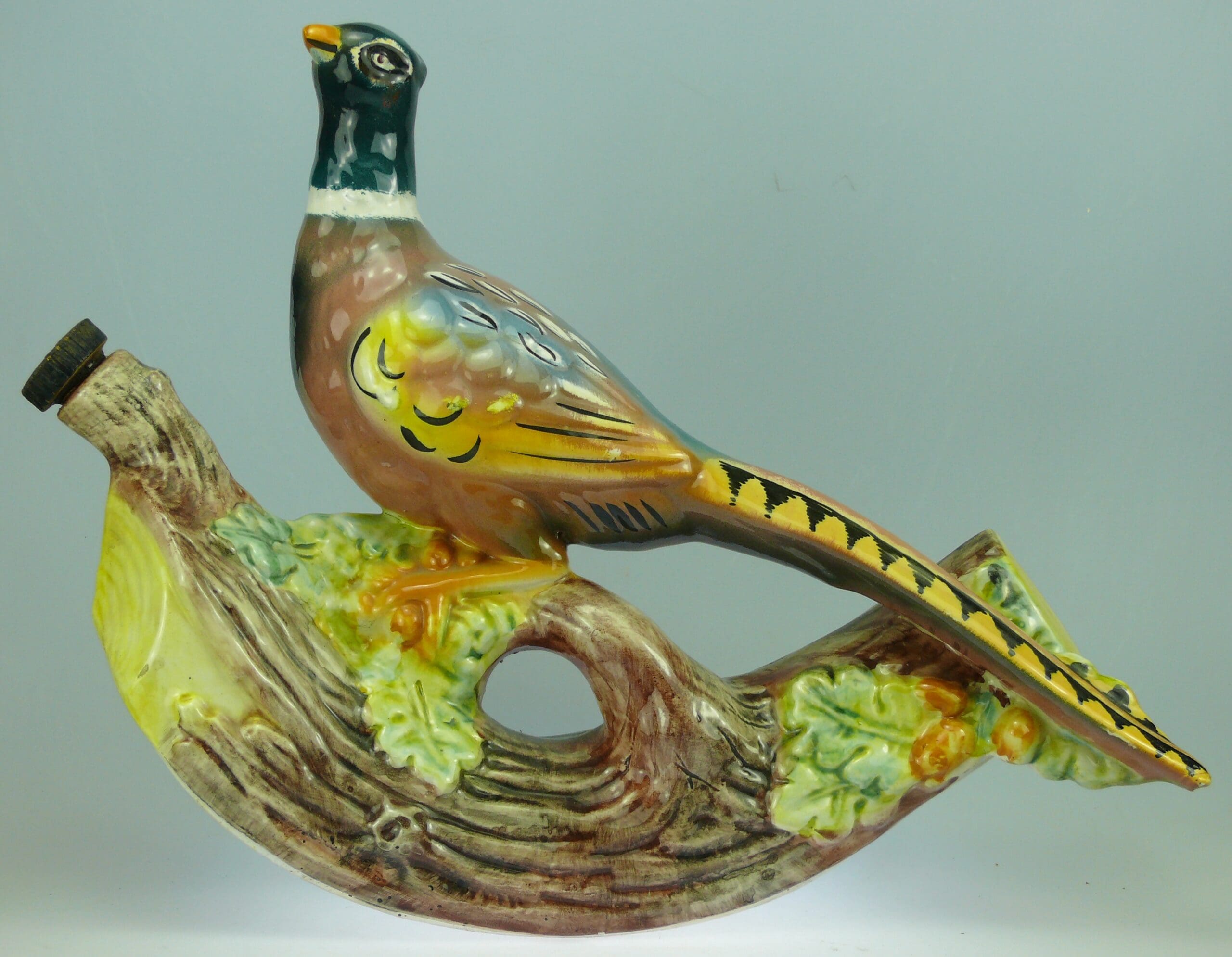 Avers : Bouteille à bascule en céramique émaillée représentant un faisan au plumage multicolore sur une branche. Flacon portant en dessous une étiquette ancienne inscrite – ANNEE 1969 – MODELE EXCLUSIF N° 233 – GARNIER Liqueurs – ENGHIEN FRANCE – CONTAINER MADE IN ITALY. Bouteille répertoriée à la page 223 sous le numéro Gar-233 dans l’ouvrage : Catalogue Raisonné, « Les bouteilles Garnier Liqueurs », aux Editions : Monnaies d’Antan. 37 cm
