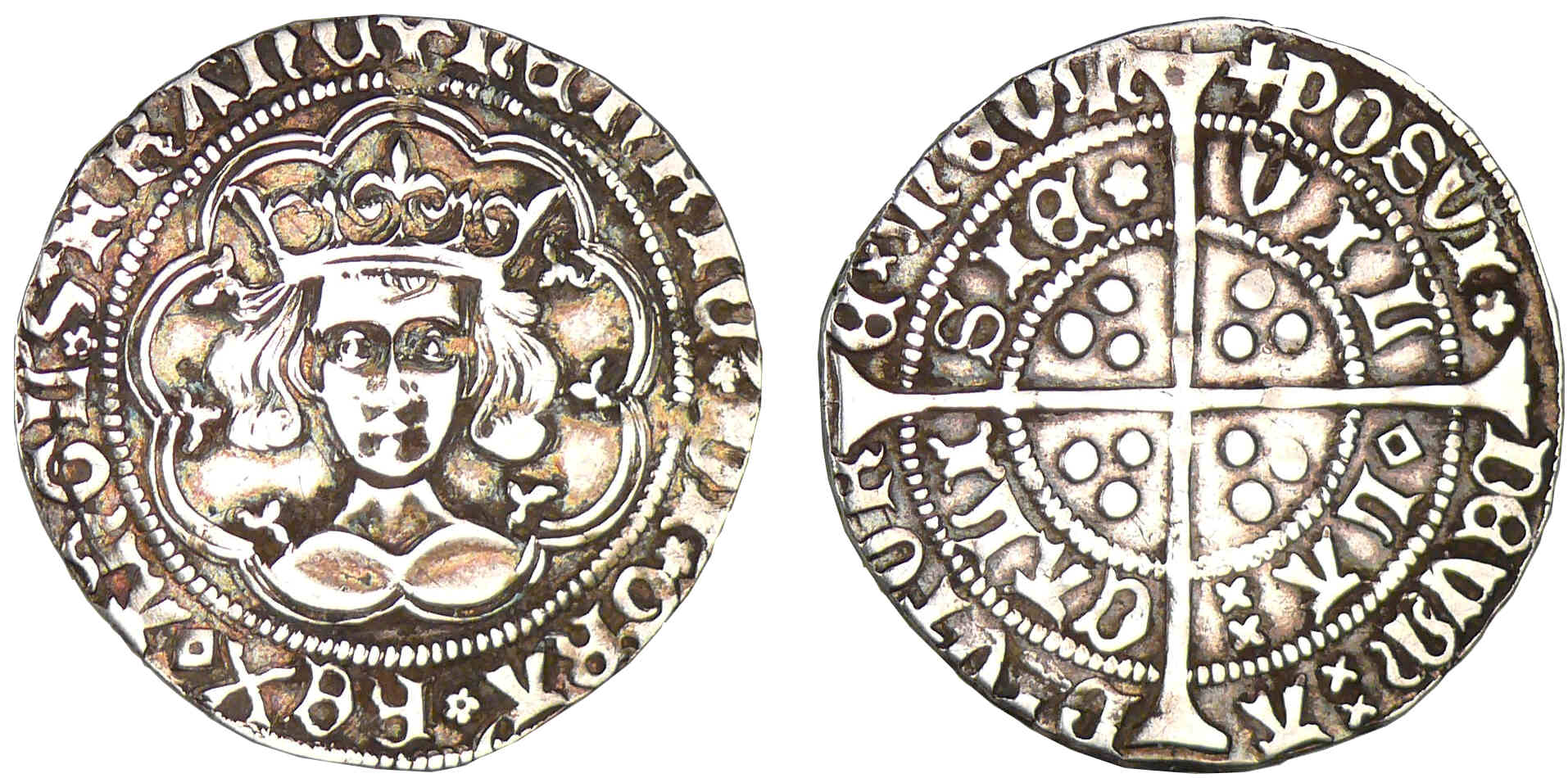 Avers : A/ + hEnRIC’x DI’x GRA’x REXx AnGL’x Z FRAnC. Buste de face.