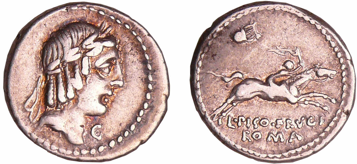 R/ L.LISO FRVGI. Cavalier nu galopant à droite. Il tient une palme de la main droite. Marque de contrôle I.