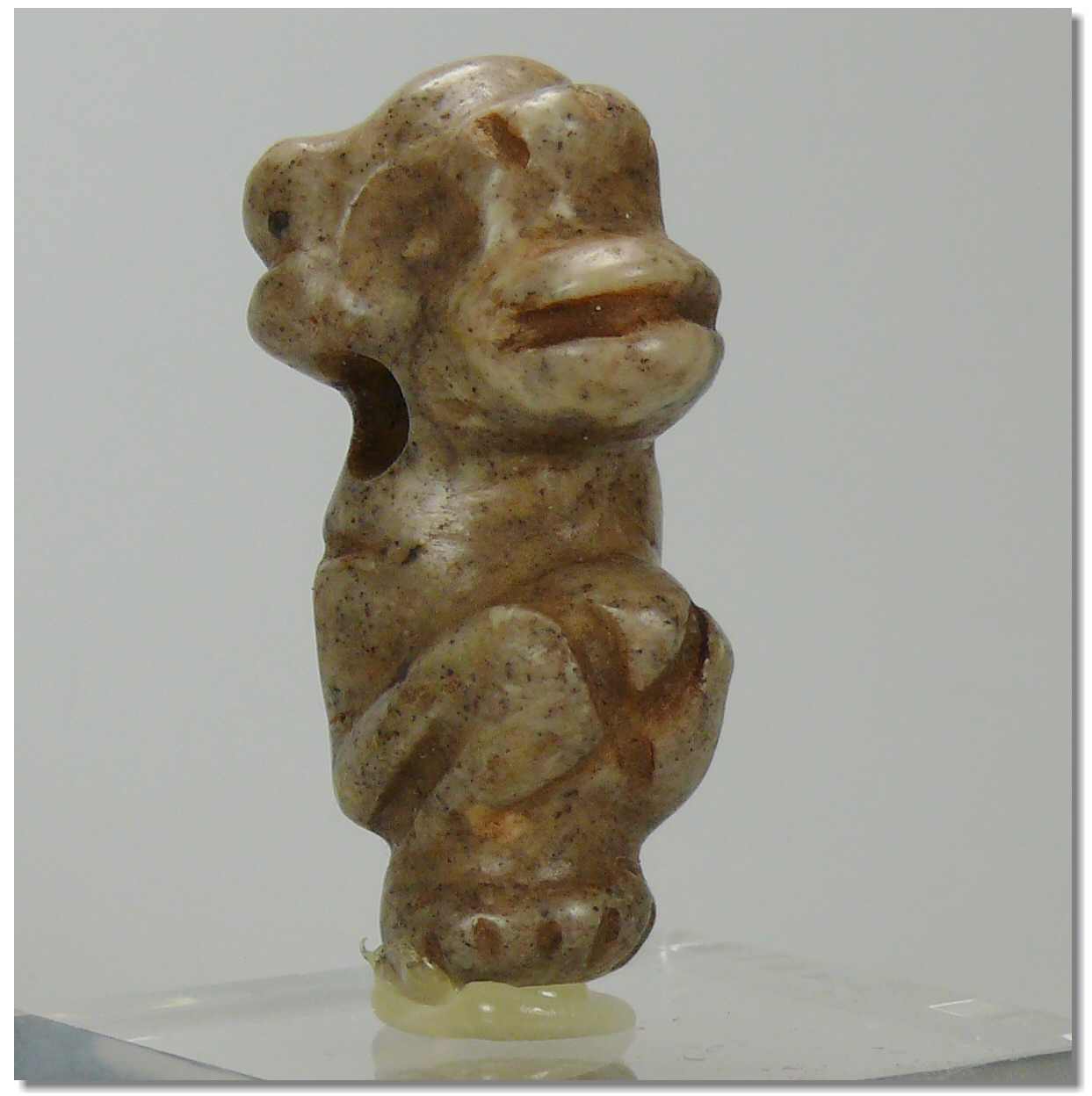 Idole en pierre « zemis », considérée comme le « lieu de résidence », représentant un homme agenouillé. 36 mm.