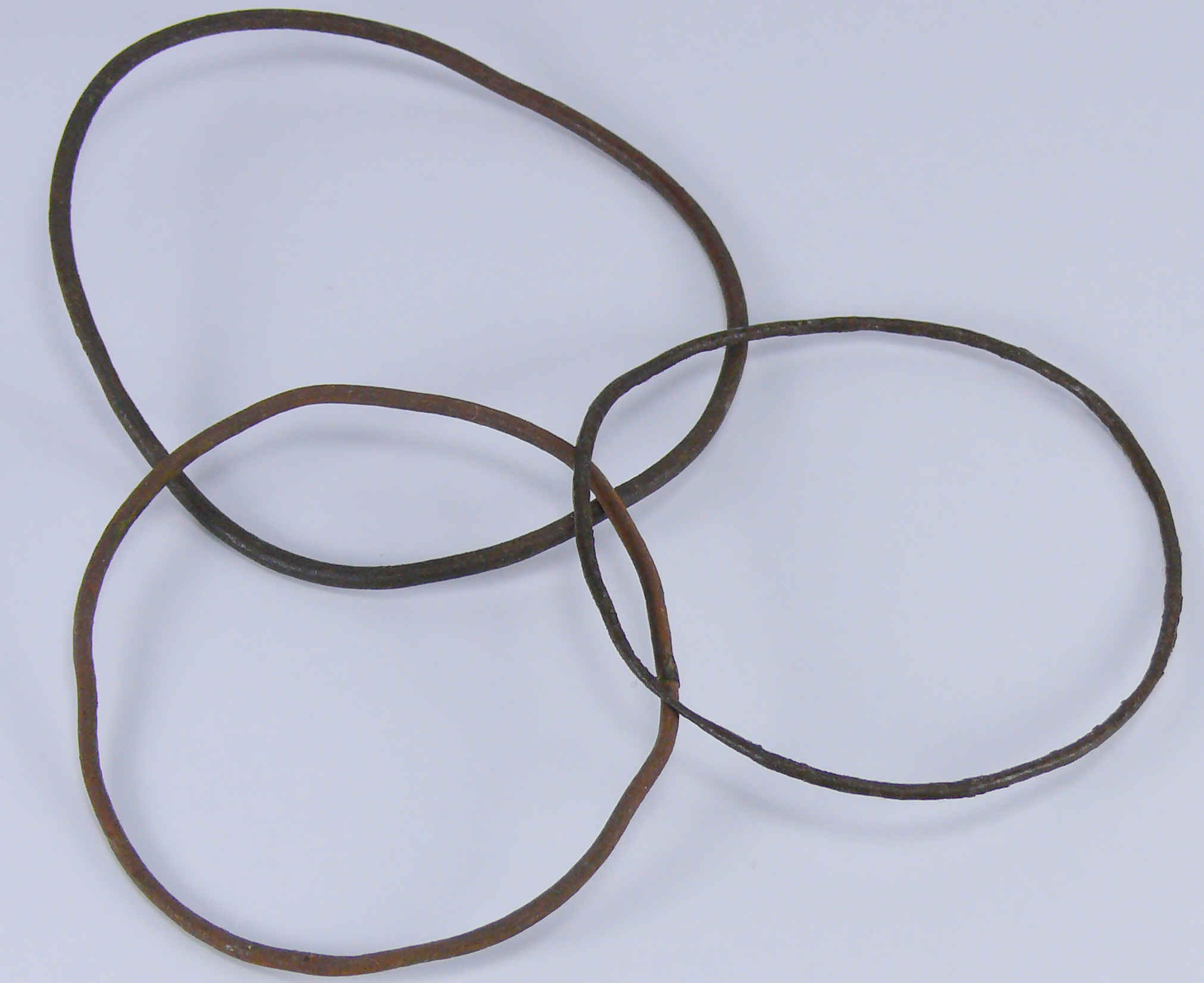 Lot de 3 bracelets en bronze filiformes de 65 mm de diamètre.