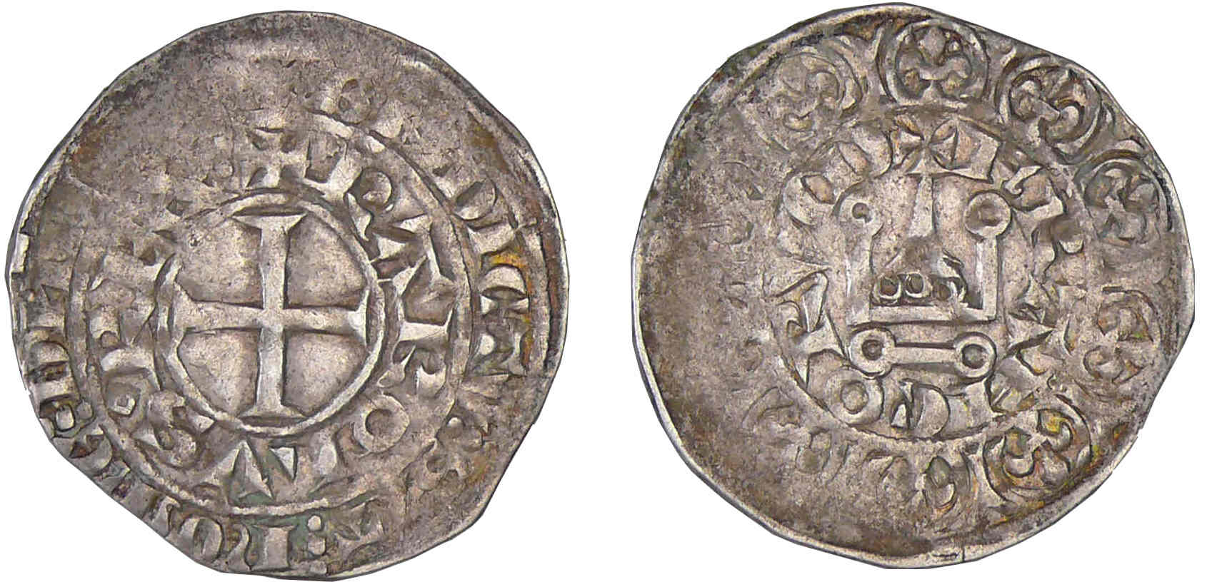 R/ + FRANChORVm. Châtel tournois. Bordure extérieure de dix lis.