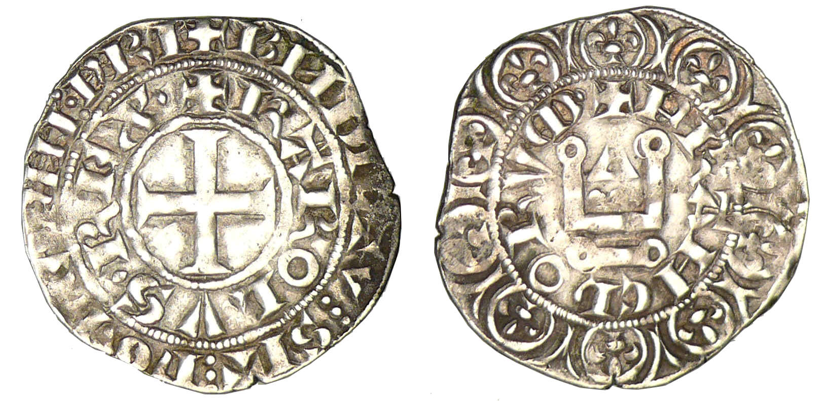 R/ + FRANChORVm. Châtel tournois. Bordure extérieure de dix lis.