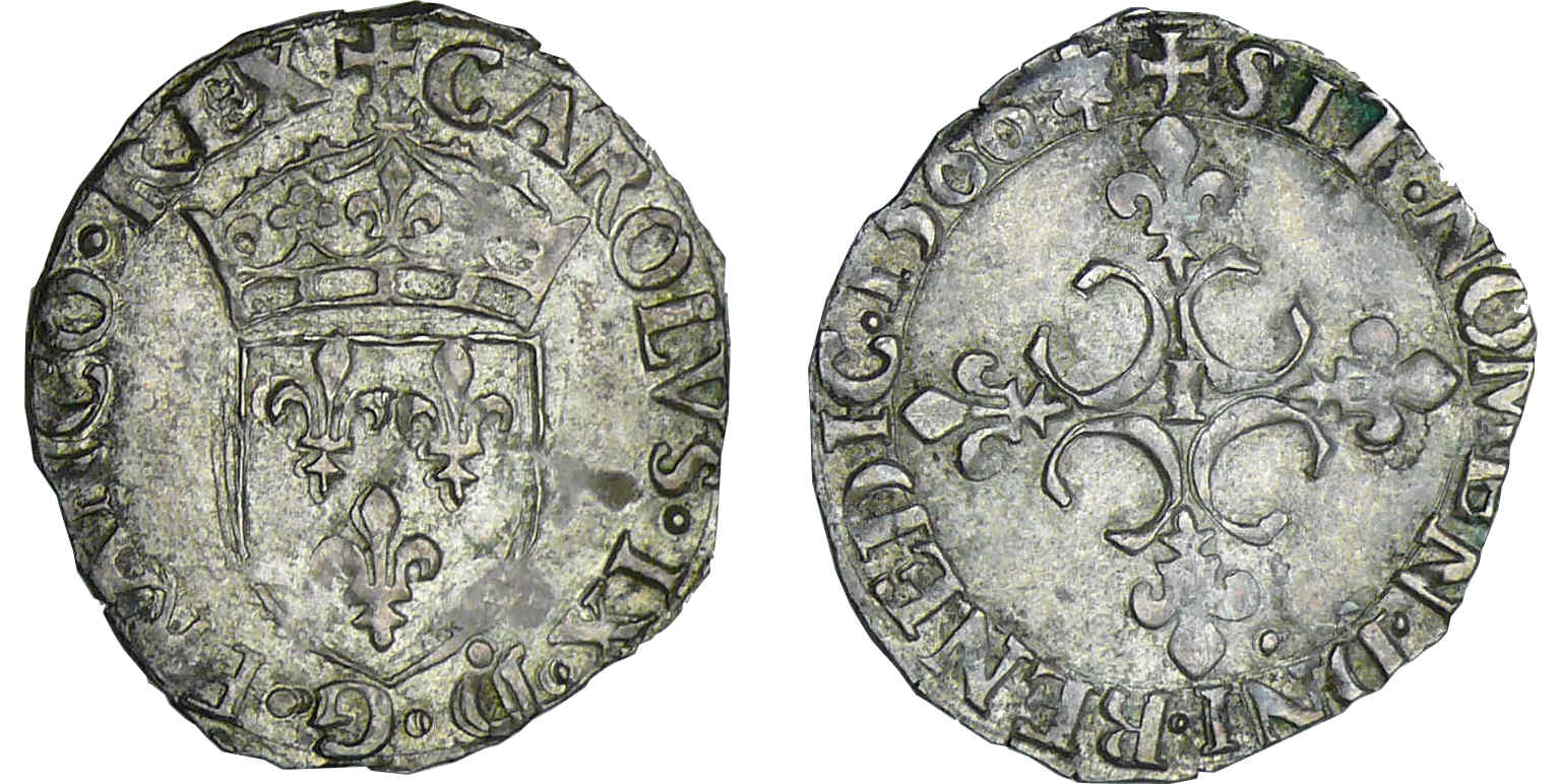 A/ + CAROLVS. IX. DEI: G. FRANC. REX. Ecu de France couronné.