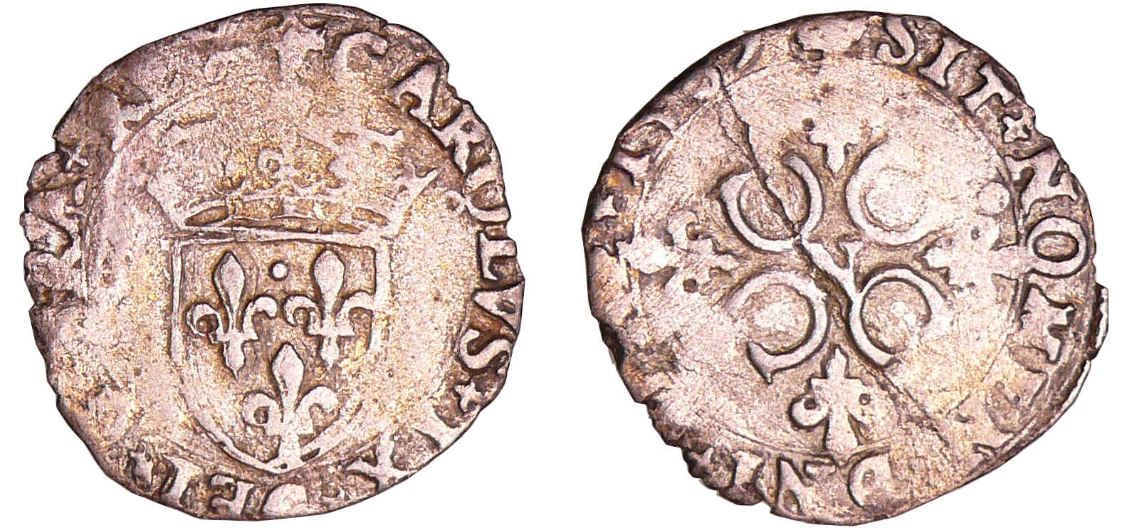 Avers : A/ + CAROLVS. IX. DEI: G. FRANC. REX. Ecu de France couronné.