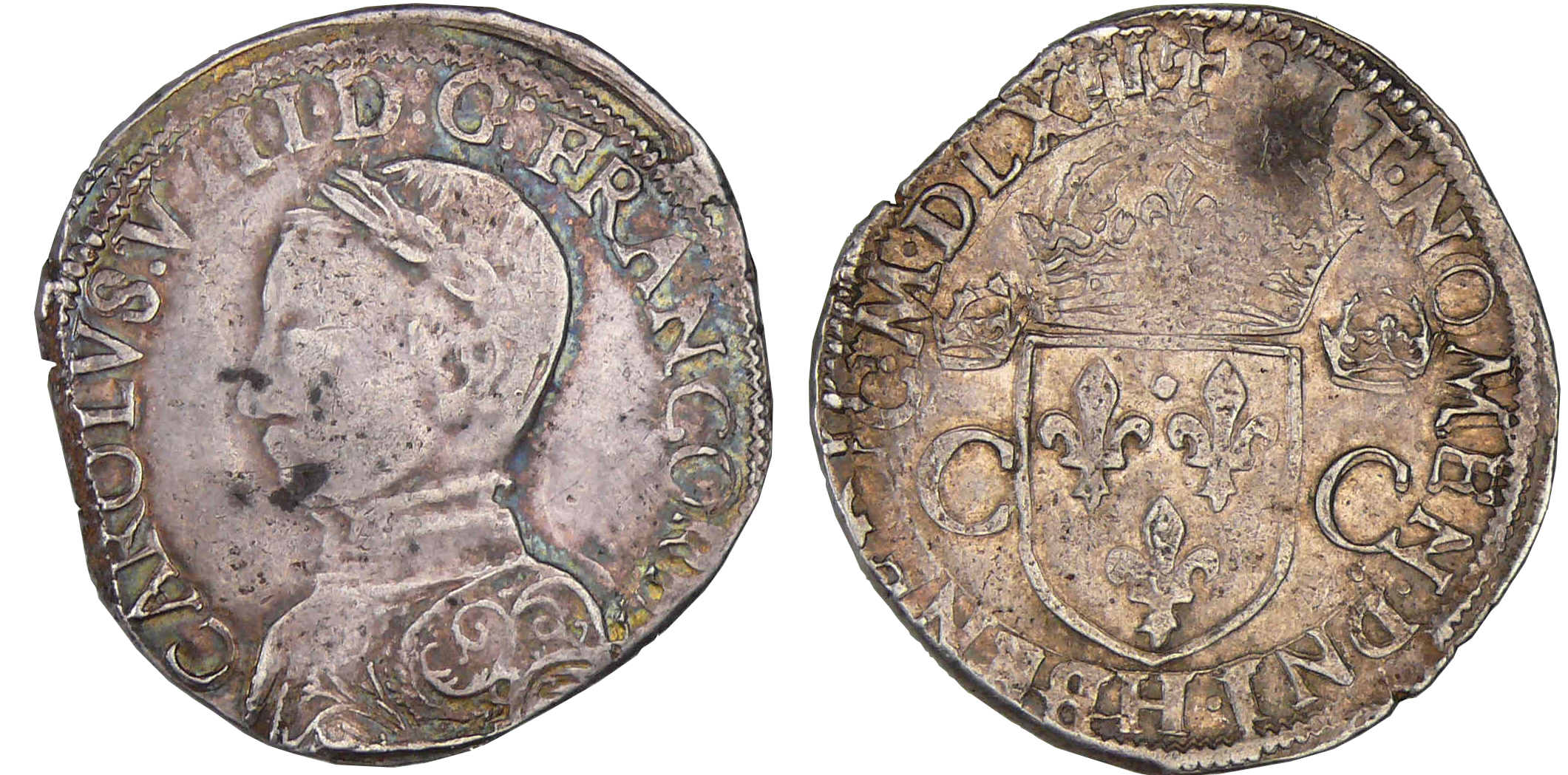 R/ + SIT NOMEN DOM BENEDIC. Ecu de France couronné et accosté de deux C couronnés.