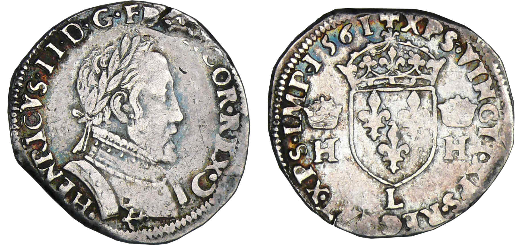 Charles IX (au nom d’Henri II) – Demi-teston – 2ème type – 1561 L (Bayonne)