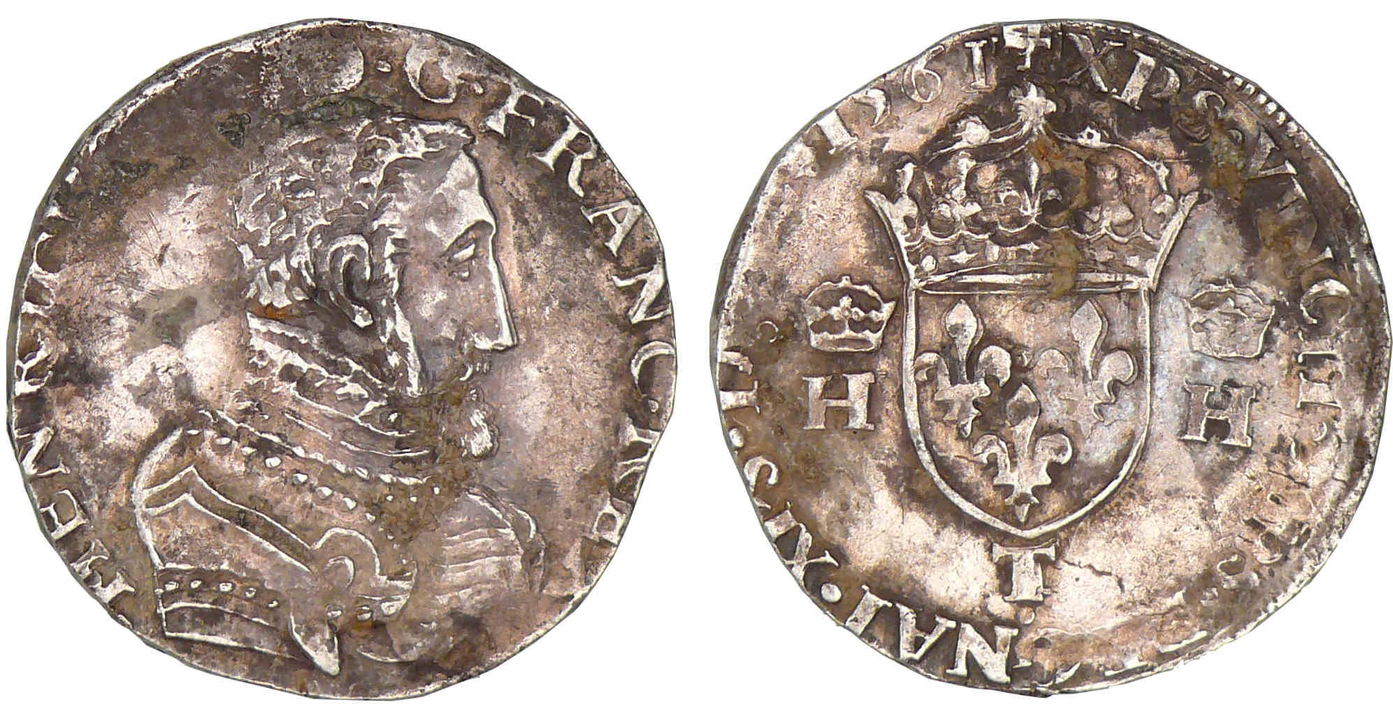 Charles IX (au nom d’Henri II) – Teston – 2ème type – 1561 T (Nantes)
