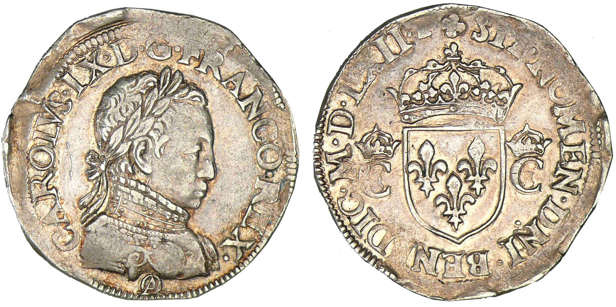 A/ CAROLVS. IX. D. G. FRANCO. REX. Buste lauré et cuirassé à droite.