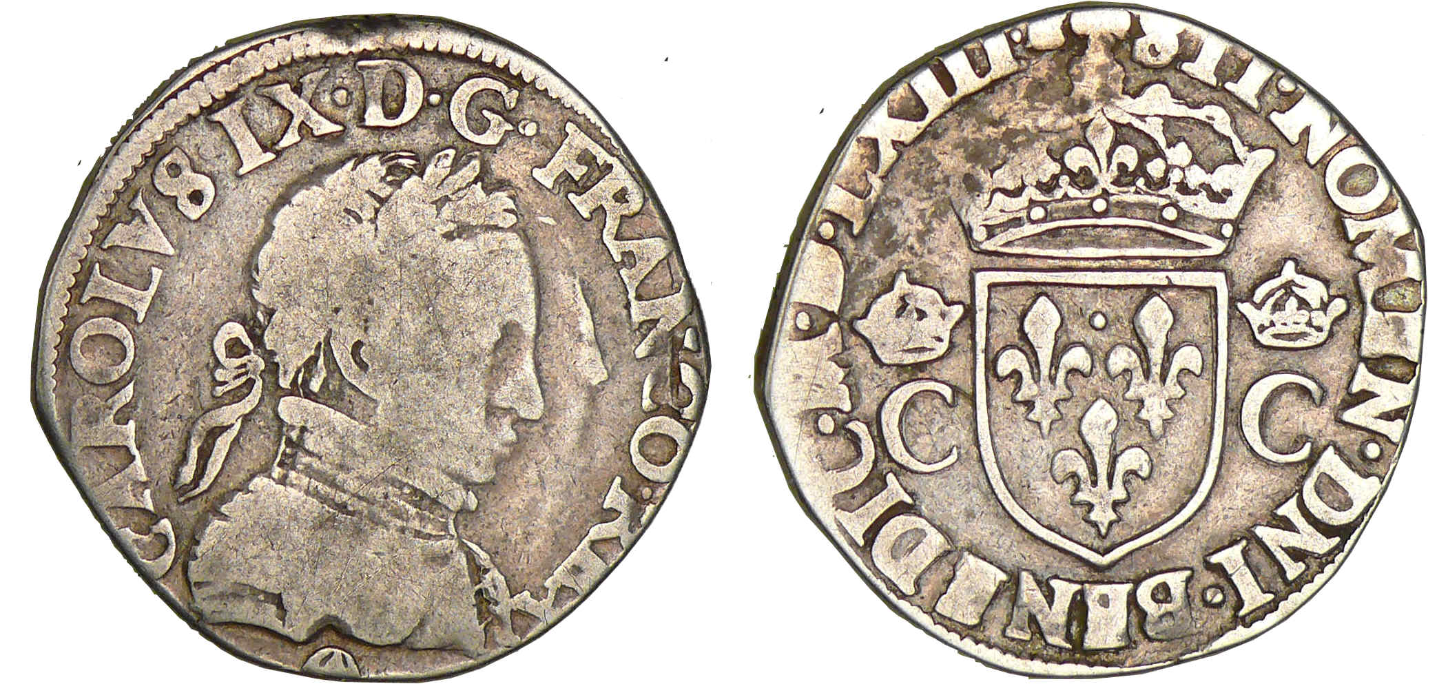 A/ CAROLVS. IX. D. G. FRANCO. REX. Buste lauré et cuirassé à droite.