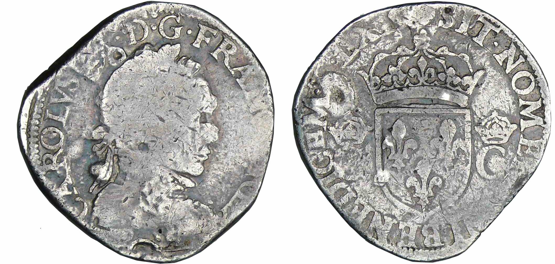 A/ CAROLVS. IX. D. G. FRANCO. REX. Buste lauré et cuirassé à droite.