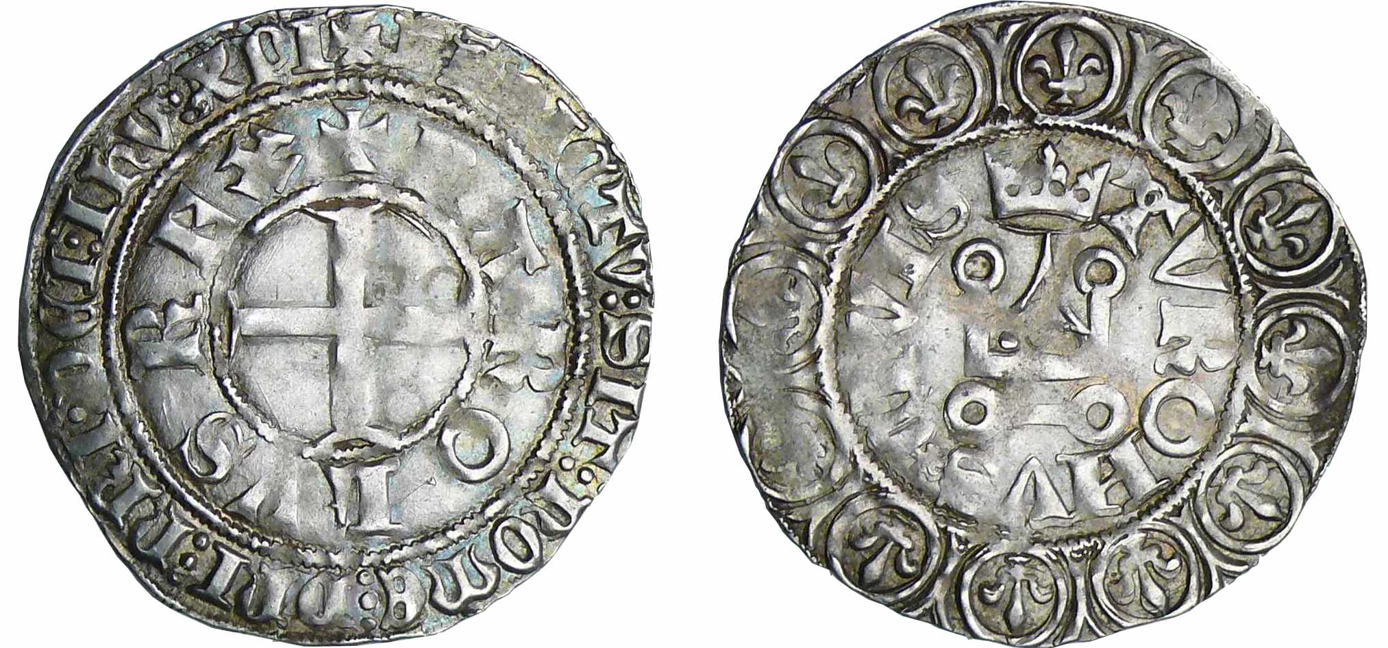 R/ TVRONVS (trèfle) CIVIS. Châtel tournois sommé d’une couronne. Bordure extérieure de douze lis.