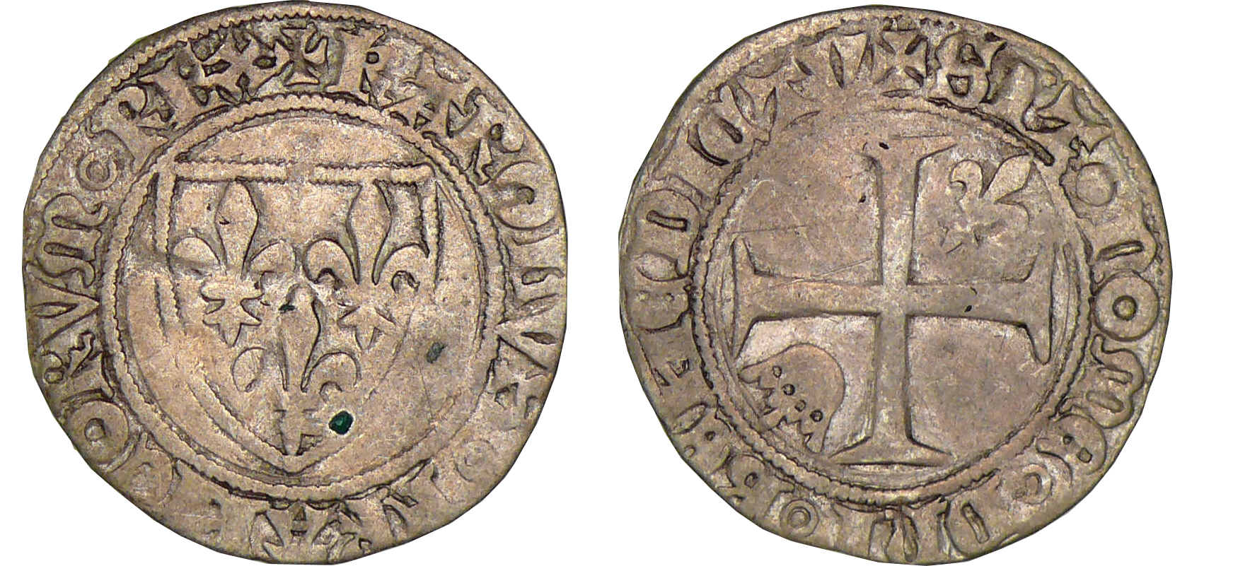 Avers : A/ + KAROLVS FRANCORV REX. Ecu de France.