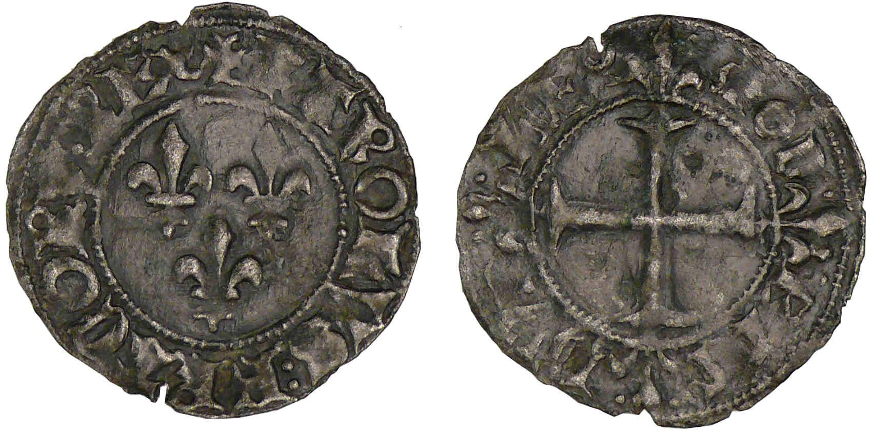 A/ + KAROLVS FRANCORV REX. Troix lis posés aux 2ème et 1er cantons.