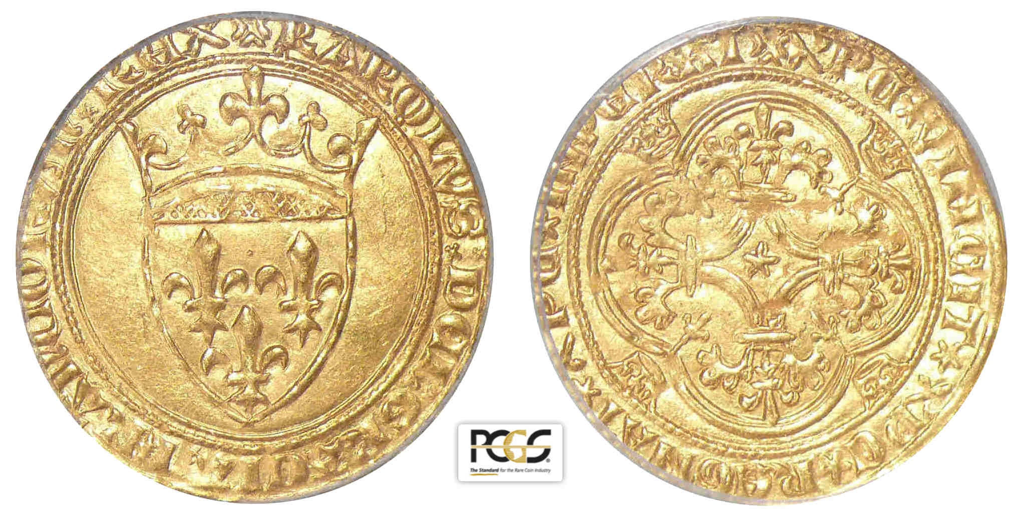 Avers : A/ + KAROLVS : DEI : GRACIA : FRAnCORVm : REX. Ecu de France couronné.