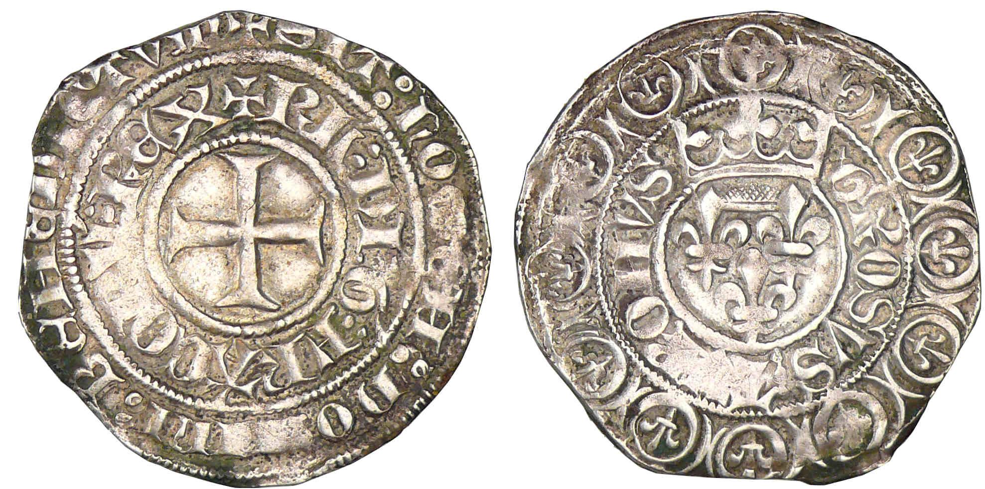 A/ + KL DI G FRANCRV REX. Ext : + SIT NOMEN DOMINI BNDICTVM. Croix.