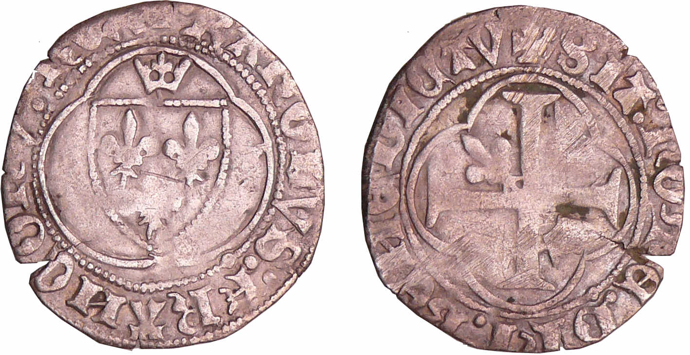 Avers : A/ + KAROLVS FRANCORVM REX. Ecu de France sous une couronnelle dans un trilobe.