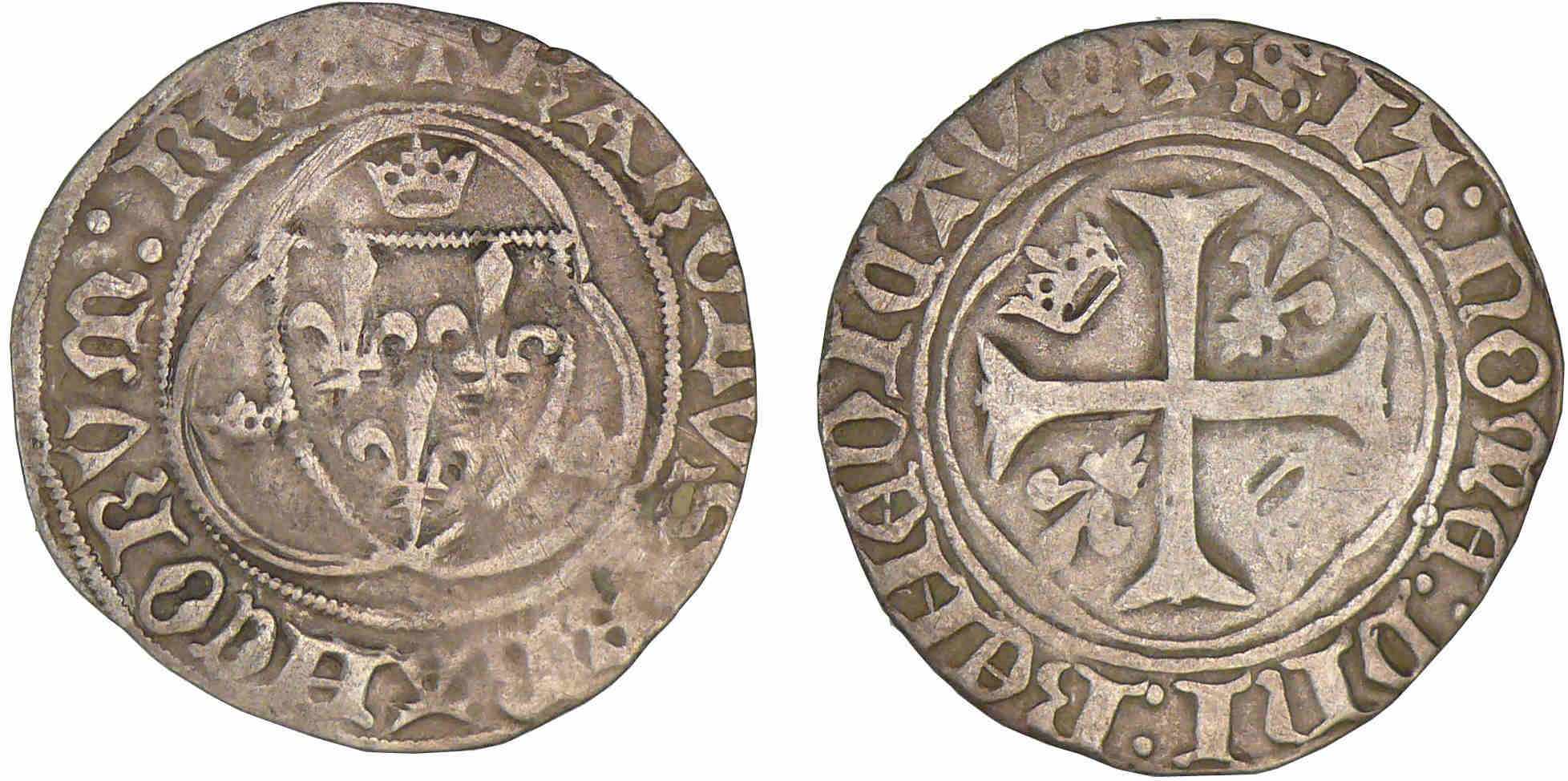 A/ + KAROLVS FRANCORVM REX. Ecu de France entre trois couronnelles dans un trilobe.