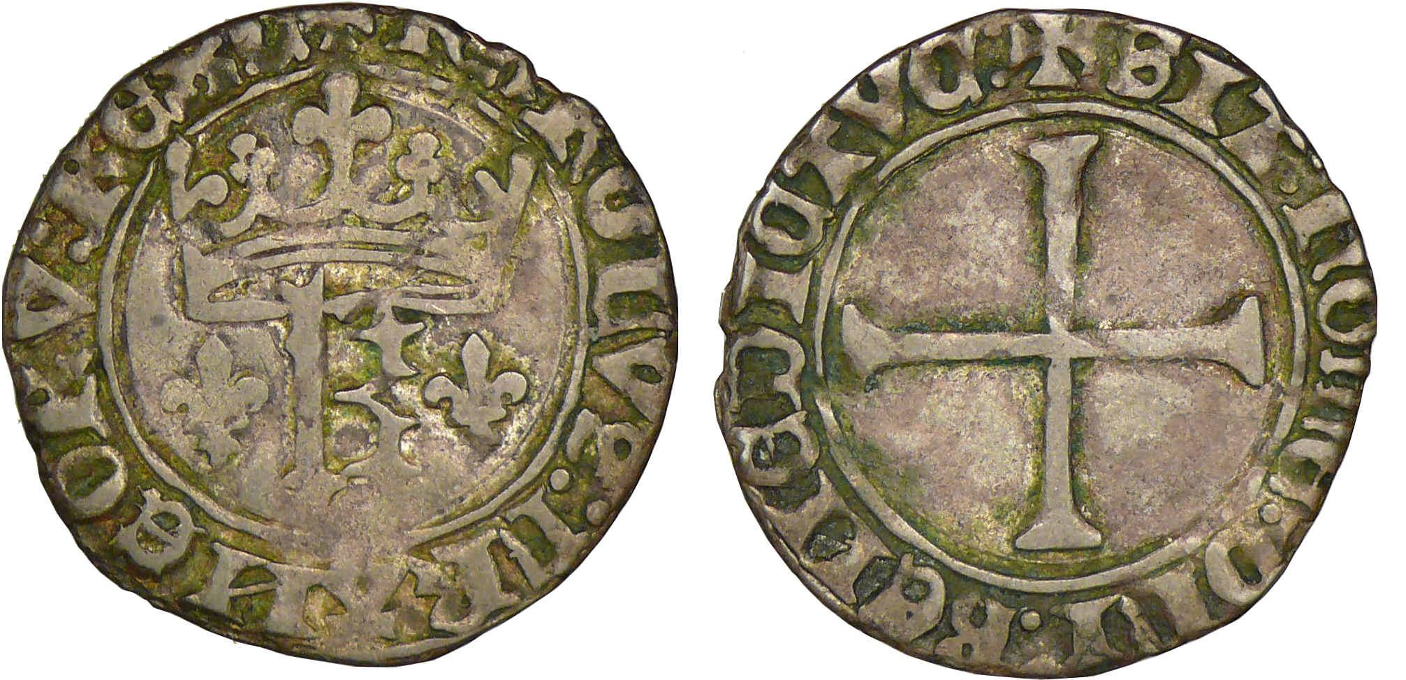 A/ + KAROLVS FRAnCORV REX. Deux lis et une couronnelle.
