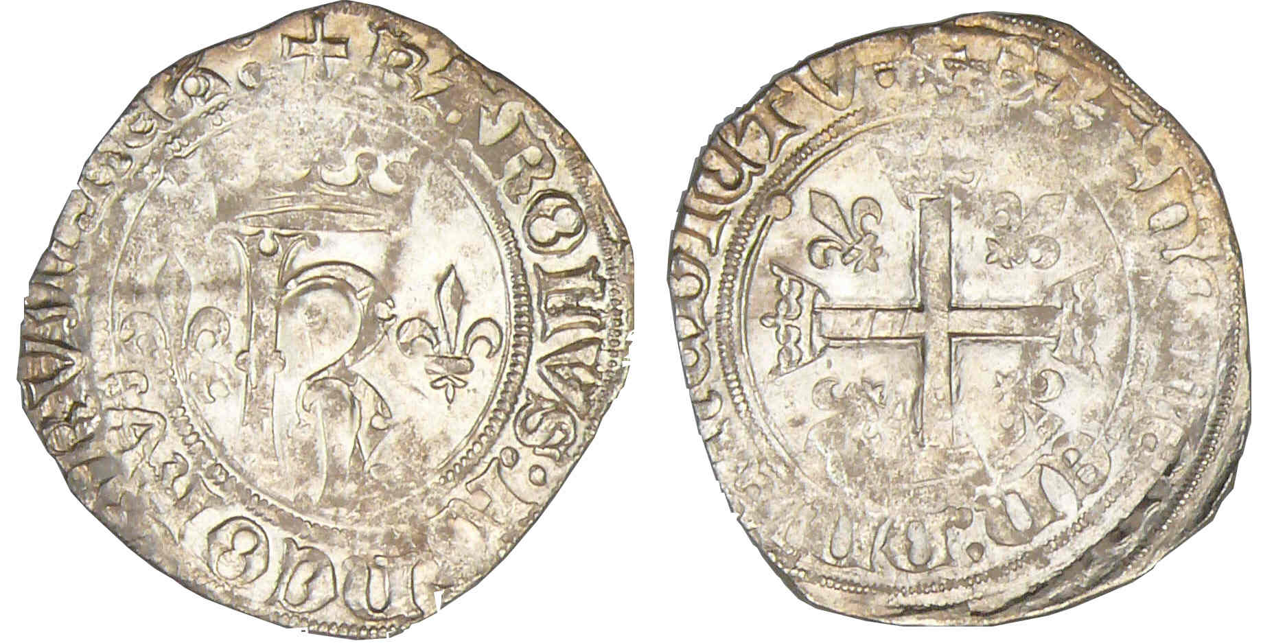 A/ + KAROLVS FRAnCORV REX. Grand K couronné et accosté de lis.