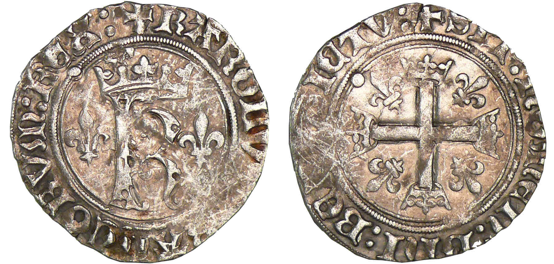 A/ + KAROLVS FRAnCORV REX. Grand K couronné et accosté de lis.