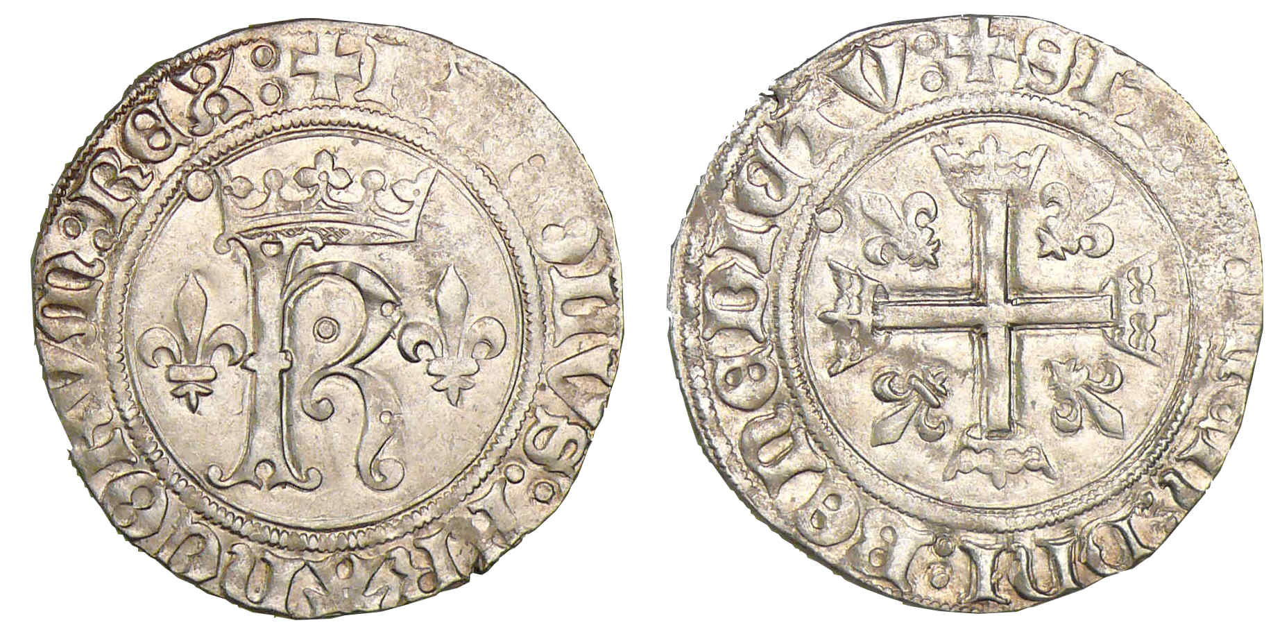 A/ + KAROLVS FRAnCORV REX. Grand K couronné et accosté de lis.