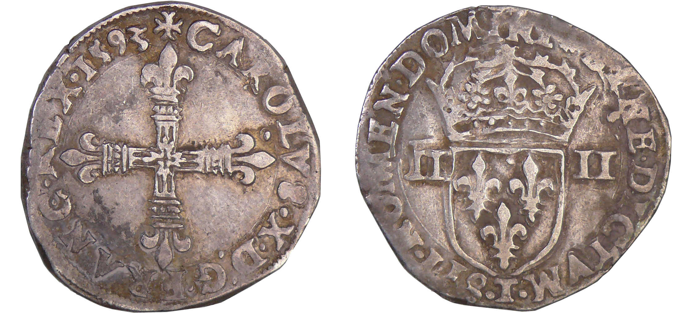 / Charles X (1589-1590) – Quart d’écu – 1593 T (Nantes)