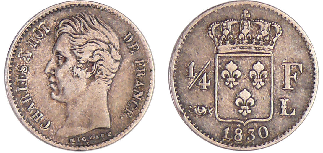 / Charles X (1824-1830) – 1/4 de franc 1830 L (Bayonne)