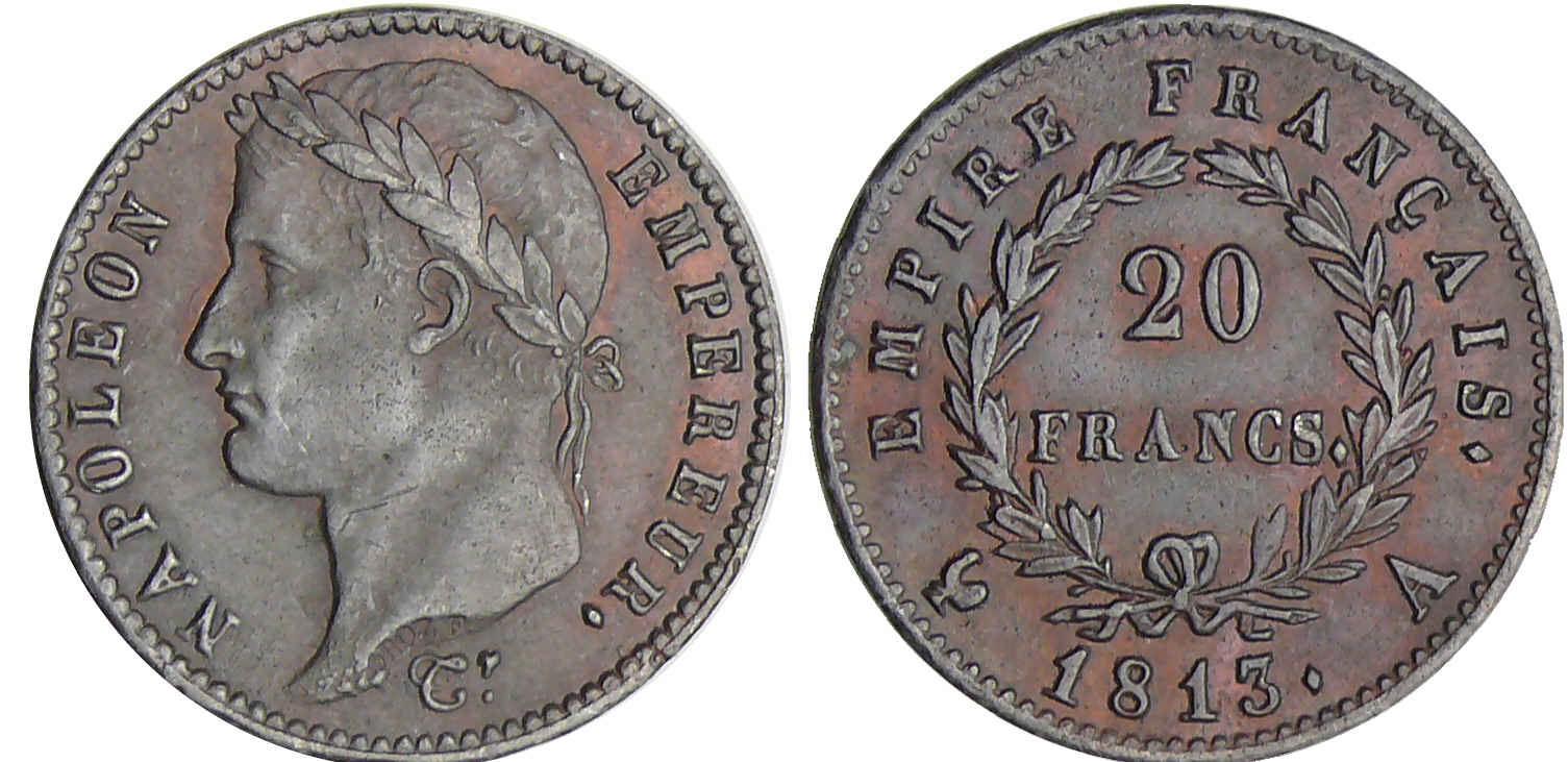 Napoléon 1er (1804-1814) – 20 francs revers empire 1813 A (Paris) épreuve en étain bronzé