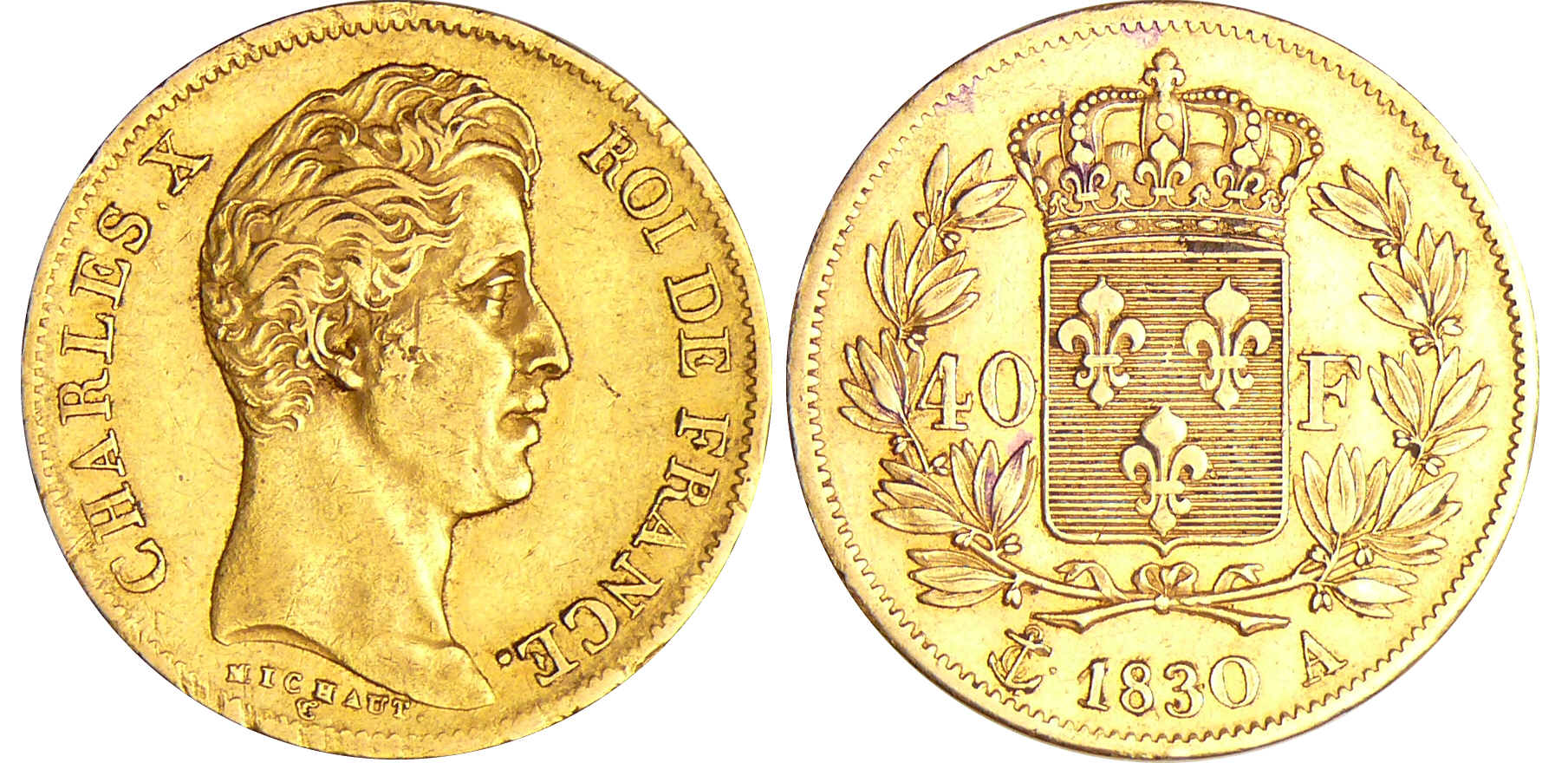 Charles X (1824-1830) – 40 francs 2ème type 1830 A (Paris)