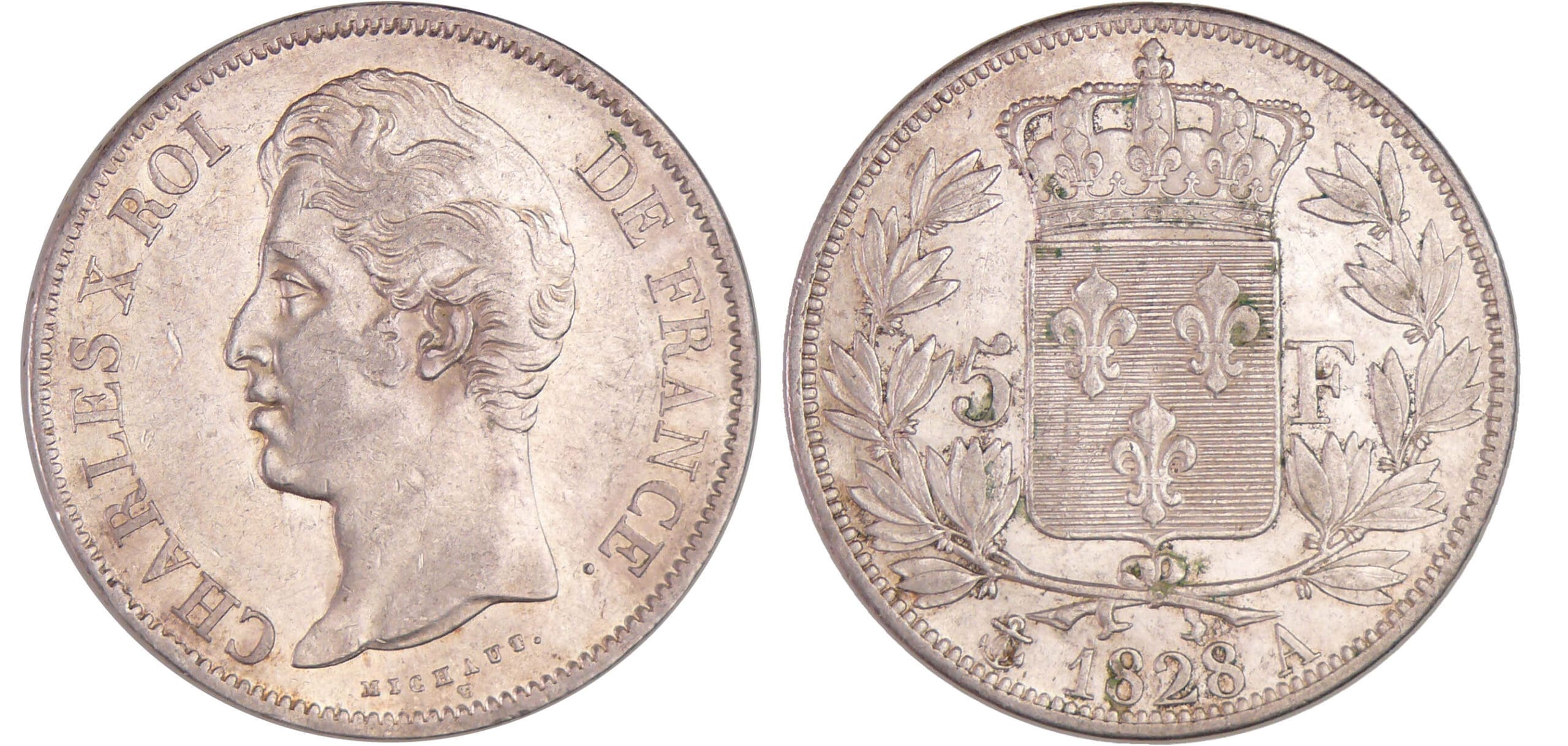 / Charles X (1824-1830) – 5 francs 2ème type 1828 A (Paris)