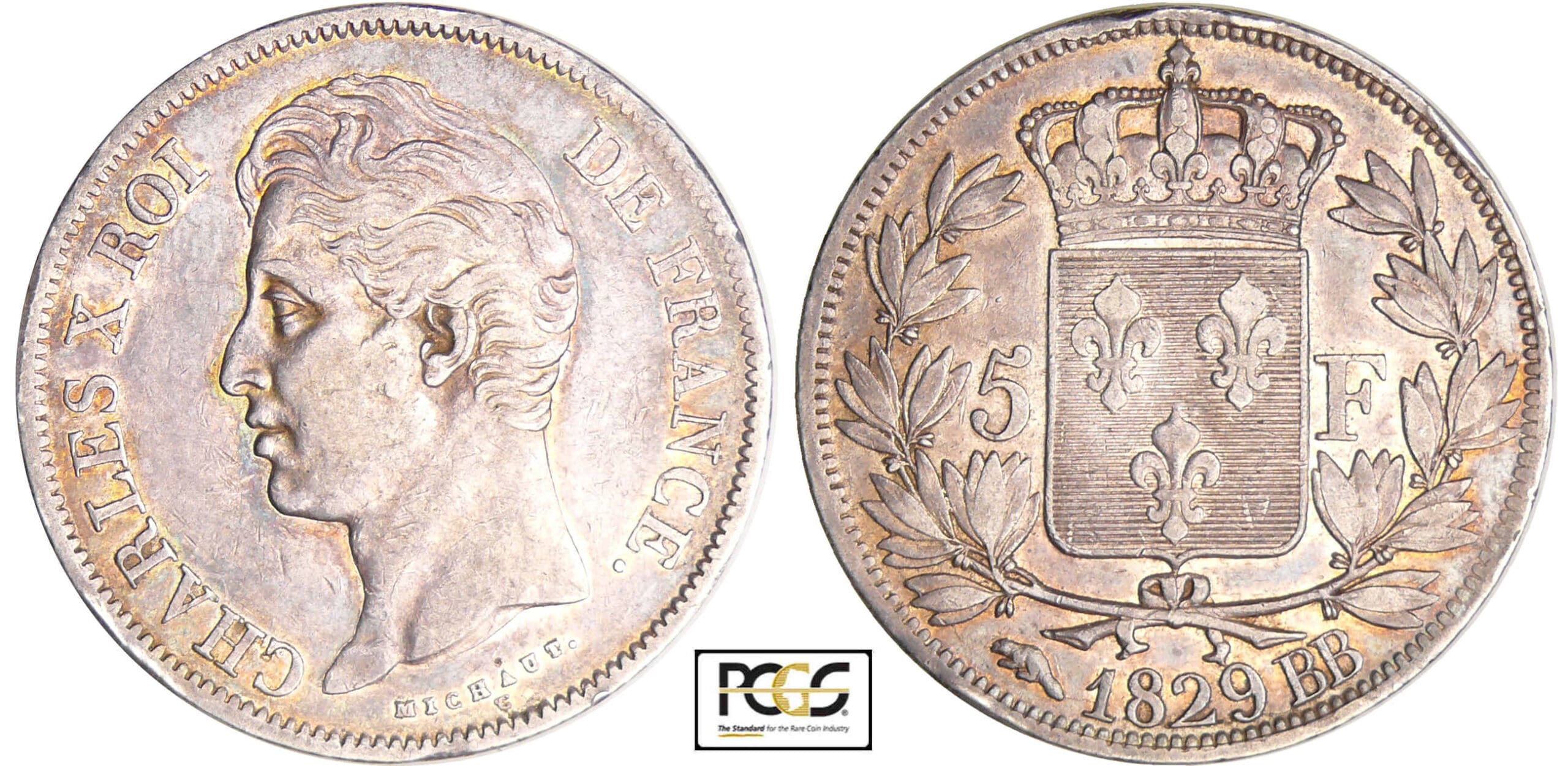 Charles X (1824-1830) – 5 francs 2ème type 1829 BB (Strasbourg)